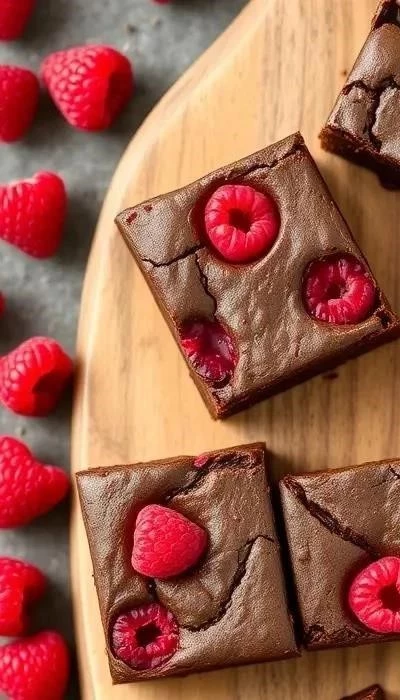 - Шоколадная глазурь: Полейте брауни растопленным шоколадом и украсьте свежей малиной.