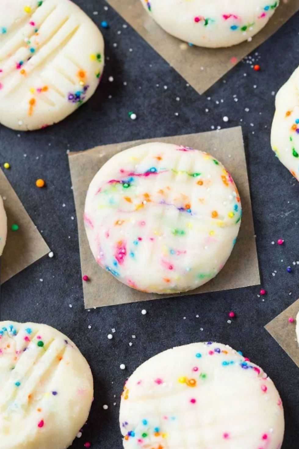 В большой миске смешайте кокосовую муку, масло кешью и кленовый сироп, перемешайте до однородной массы. Если тесто слишком жидкое, добавляйте кокосовую муку до тех пор, пока тесто не станет густым. Добавьте цветную посыпку и перемешайте. Если же тесто слишком густое, добавьте немного молока или воды.