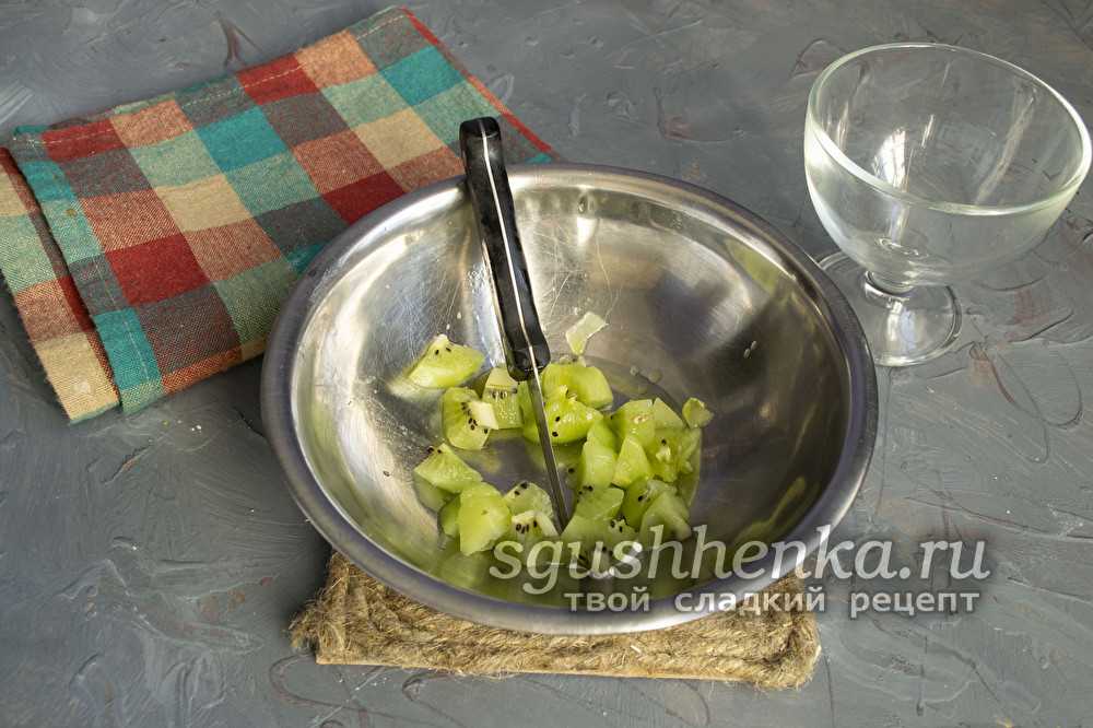 - Ягоды необходимы свежие. Замороженные для десерта не подойдут, так как они слишком водянистые. Промытые ягоды нарезать кусочками.