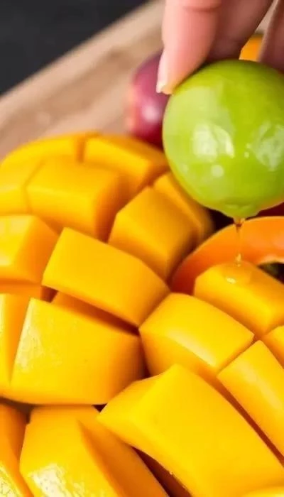 - Полейте фрукты соком лайма и аккуратно перемешайте.