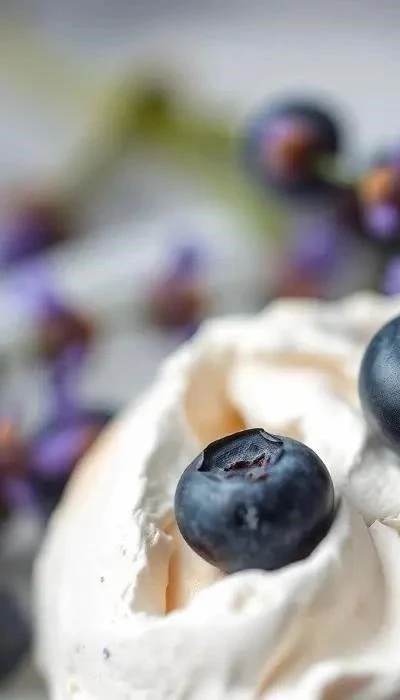 Черника: Для Павловой лучше всего подходит свежая черника, она обладает насыщенным вкусом и сочностью. Если свежей нет, можно использовать замороженную, но предварительно размораживать ее не нужно, чтобы она не потеряла форму. Важно, чтобы ягоды были целыми и не помятыми.
