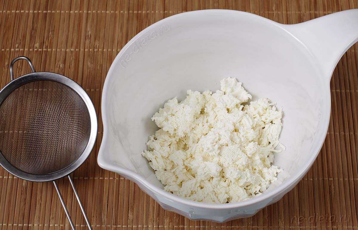 7. Чтобы приготовить творожную начинку для чизкейка, творог протереть через сито или измельчить блендером.