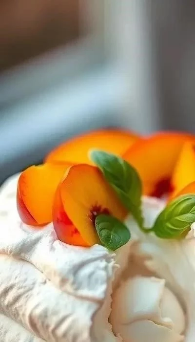 Для создания этой воздушной и нежной Павловой с персиком и базиликом, вам потребуются следующие компоненты: