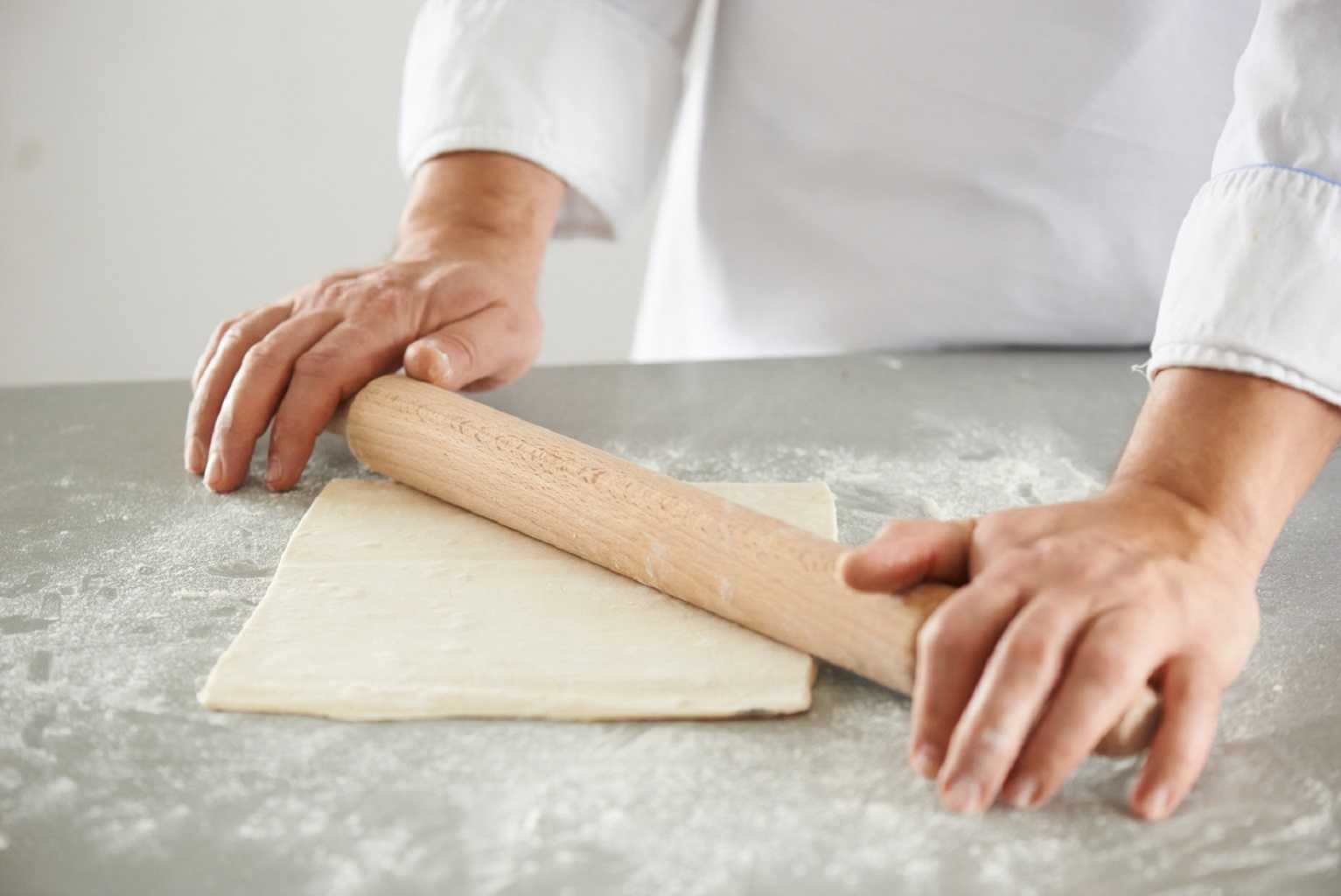- Температура воздуха при замешивании теста устанавливается на уровне 24°С, при раскатке — 16°С, а при расслаивании — 25°С.