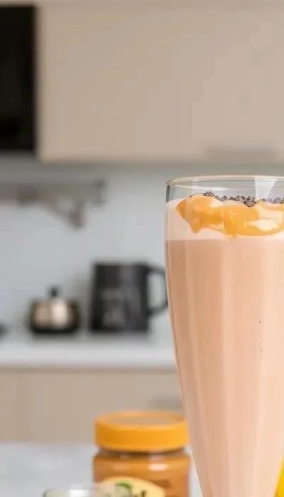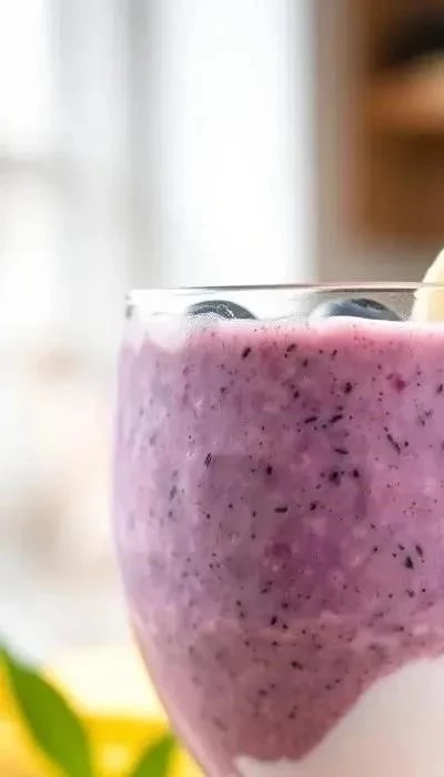 Ингредиенты: 1 банан, 150 г замороженных ягод (клубника, черника, малина – на ваш вкус), 100 мл молока (можно использовать растительное молоко), 1 чайная ложка меда (по желанию). Время приготовления: 5 минут. Калорийность: около 200 ккал. БЖУ: белки – 5 г, жиры – 2 г, углеводы – 40 г.