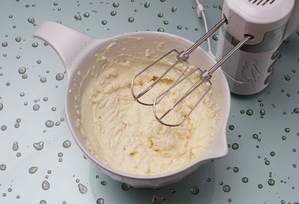 7. С помощью миксера смешать творог с размягченным сливочным маслом.