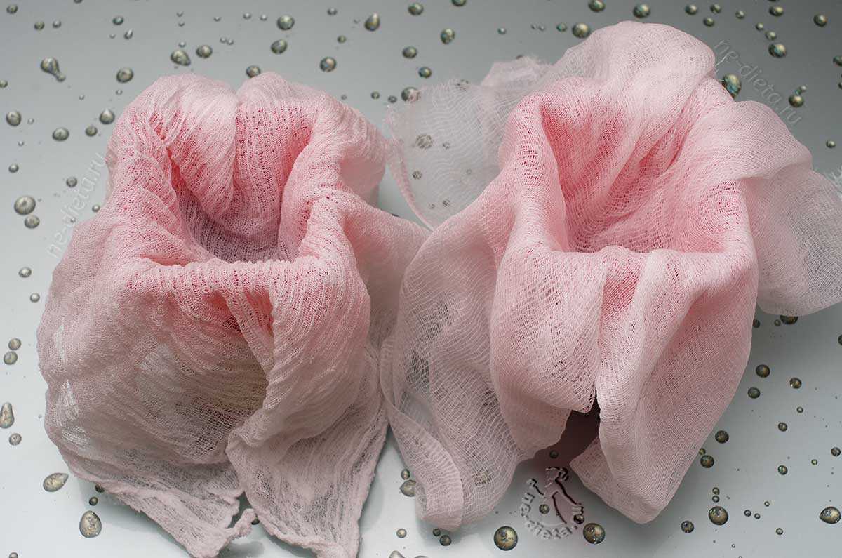 Форму выстилаем марлей в несколько слоёв и помещаем в посуду, в которую будет стекать жидкость.