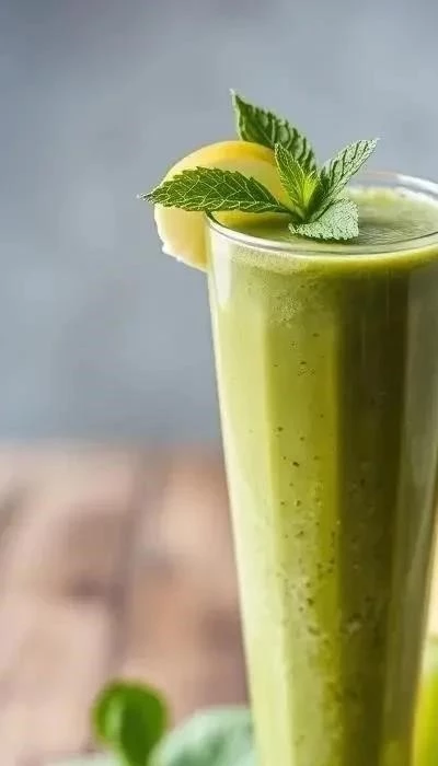 Состав: шпинат, банан, зеленое яблоко, кусочек имбиря, вода или кокосовая вода. Все ингредиенты взбить в блендере до однородности. Этот напиток богат антиоксидантами и клетчаткой, дарит моментальный прилив энергии и улучшает пищеварение.