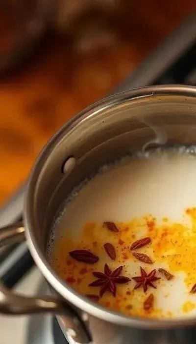 Шаг 2: Пока вода закипает, подготовьте специи. Раздавите в ступке 5 г корицы, 5 г гвоздики, 10 г черного перца горошком, 15 г зеленого кардамона и 10 г имбиря. Если у вас есть черный кардамон, добавьте 10 г. Шаг 3: Добавьте специи в кипящую воду с молоком. Уменьшите огонь до минимума и варите 7 минут, чтобы специи полностью раскрыли свой аромат. Некоторые рецепты рекомендуют кипятить несколько секунд, но 7 минут – оптимальное время для насыщенного вкуса.