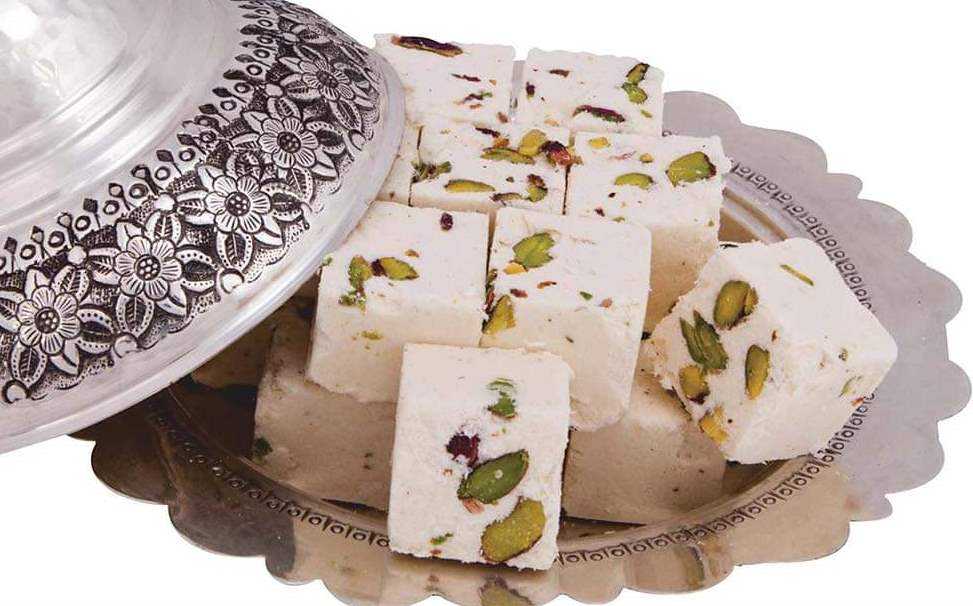 Из-за названия это лакомство многие путают с халвой. Брускообразная нуга чаще всего имеет светлый кремовый цвет, иногда – кофейный, а совсем редко ее делают фруктовой. Неизменным остается присутствие в десерте большого количества орехов (как правило, фисташек). Орешки выступают не только в роли начинки, но и в качестве украшения.