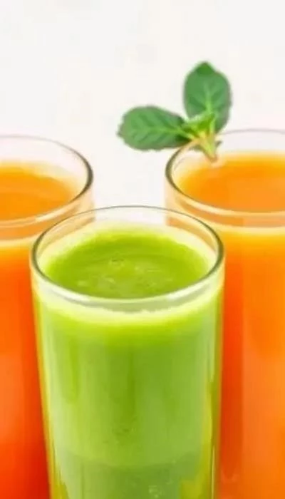 Способы приготовления: Лучше использовать соковыжималку, чтобы получить максимальное количество сока. Если ее нет, можно натереть фрукты или овощи на терке и отжать сок через марлю, но это займет больше времени и может снизить пользу напитка.