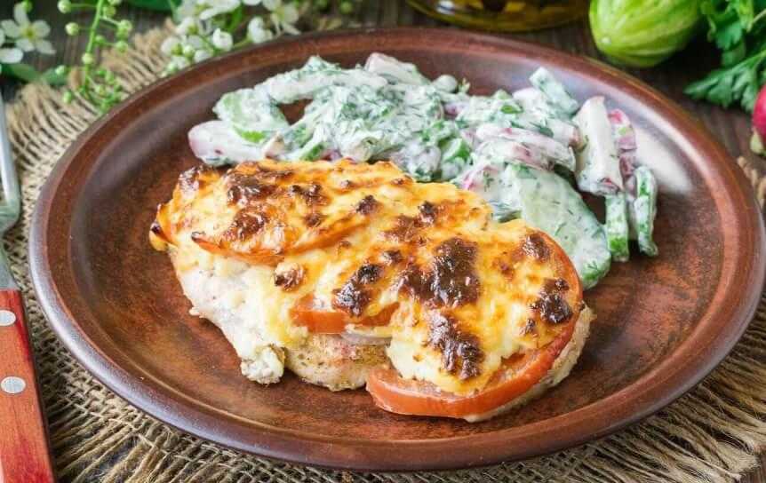 Отличным дополнением к мясу и сыру считается помидор. Это — классическое трио ингредиентов, которые превосходно сочетаются один с другим. Сытный стейк из свинины в духовке в фольге с этими компонентами может стать вашим коронным блюдом.
