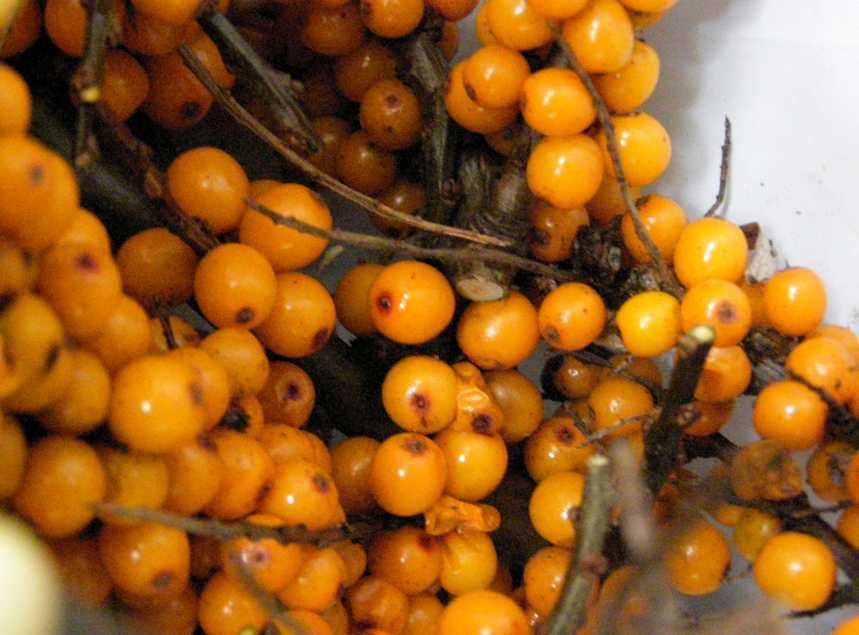 - Слегка недозревшие плоды облепихи, необходимо обработать: вымыть ягоды в воде, высушить и срезать плодоножки.