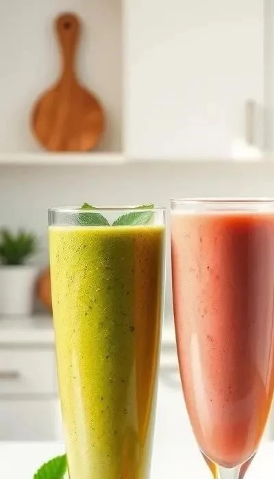 Если ваша главная цель — долгая сытость и мягкое очищение организма, то ваш выбор — овощной смузи или белковые коктейли. Они содержат меньше фруктозы и больше клетчатки, что делает их идеальным решением для смузи для похудения. Белок в составе надолго утоляет голод, помогая избежать вредных перекусов до обеда. Вот несколько проверенных рецептов.