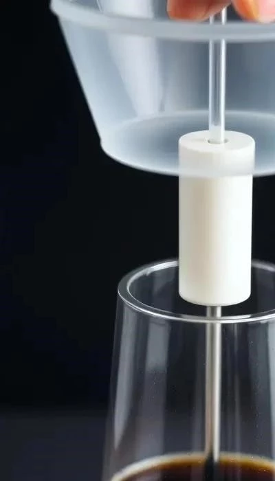 - Установите поршень и медленно надавите на него, чтобы извлечь кофе. Важно! Остановитесь, как только почувствуете сопротивление.