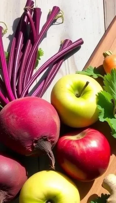 Свекольный фреш с имбирем: Имбирь придает фрешу пикантность и обладает противовоспалительными свойствами. Добавьте небольшой кусочек имбиря (около 1-2 см) к 1 свекле и 1 яблоку, а затем пропустите все ингредиенты через соковыжималку. Этот фреш отлично согревает и укрепляет иммунитет. Совет: для более насыщенного вкуса можно добавить немного лимонного сока.