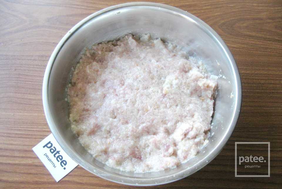 Хорошо перемешать все ингредиенты, а еще лучше взбить блендером. При этом фарш станет однородным, нежным и гладким. Поставить его в холодильник на 30-40 минут.