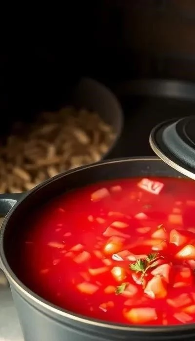 Для приготовления вкусных щей в русской печи нам потребуется: 500 г квашеной капусты (или 700 г свежей), 300 г говядины на кости, 2 картофелины, 1 морковь, 1 луковица, 2 ст. ложки томатной пасты, 3-4 лавровых листа, несколько горошин черного перца, соль, перец по вкусу, зелень (укроп, петрушка) для подачи. Мясо промыть и залить холодной водой, довести до кипения, снять пену и варить около 1,5-2 часов до мягкости. Говядину вынуть из бульона, отделить от костей и нарезать небольшими кусочками. Капусту нашинковать, если используете свежую – потушить с томатной пастой. Картофель нарезать кубиками, морковь натереть на терке, лук мелко нарезать.