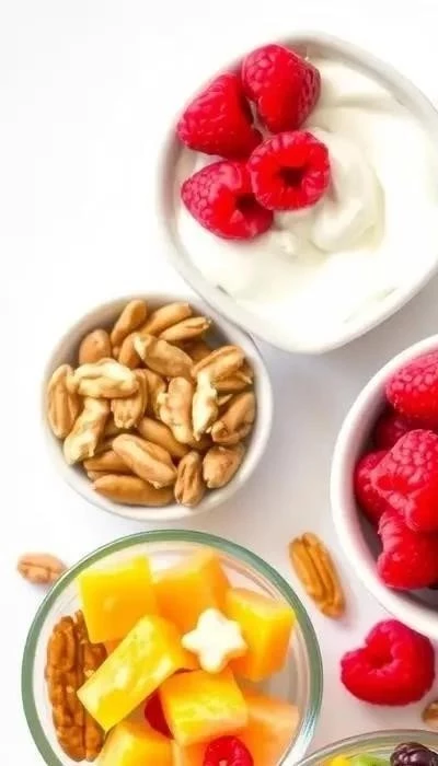 - Молочные продукты: Несладкий йогурт, кефир, нежирный творог с ягодами или зеленью.