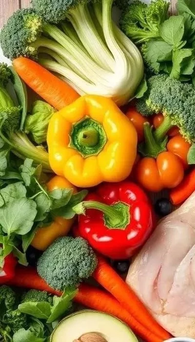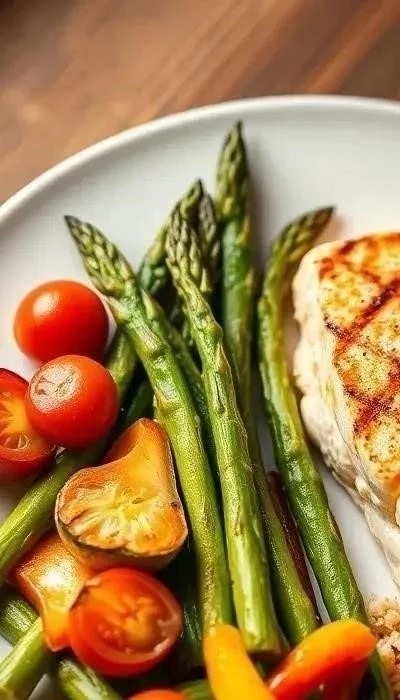 - Куриное филе с гарниром: Отварное/запеченное филе с тушеными овощами или свежим салатом.