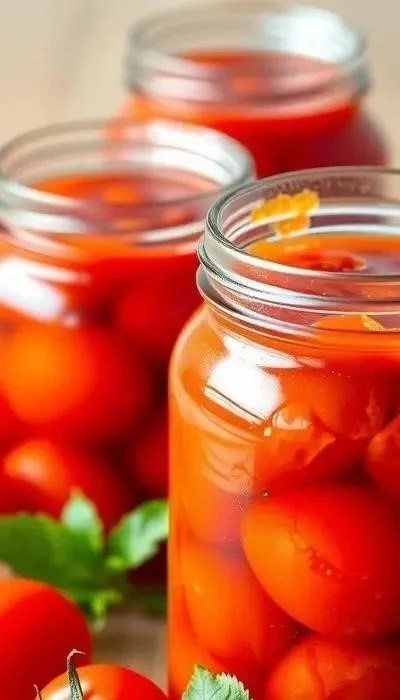 Секрет вкуса: Используйте спелые, но не перезрелые помидоры. Сливки придают маринаду мягкость и кремовость. Не забудьте про стерилизацию банок!