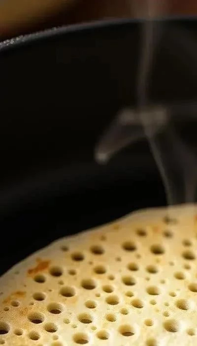 Заварные блинчики на кипятке: Их воздушность и обилие дырочек кроются в том, что мука, залитая кипятком или горячим молоком, лучше удерживает влагу, делая тесто пышным. Взбиваем яйца с ванилином и сахаром, добавляем молоко. Муку с разрыхлителем постепенно вводим в яичную смесь. Консистенция теста должна быть как сметана. Вливаем кипяченую воду и растительное масло. Активное взбивание создает пузырьки, которые лопаются, образуя дырочки. Метод «блинов из бутылки» позволяет экономить время и легко формировать тонкие узорчатые салфетки, делая процесс очень увлекательным.