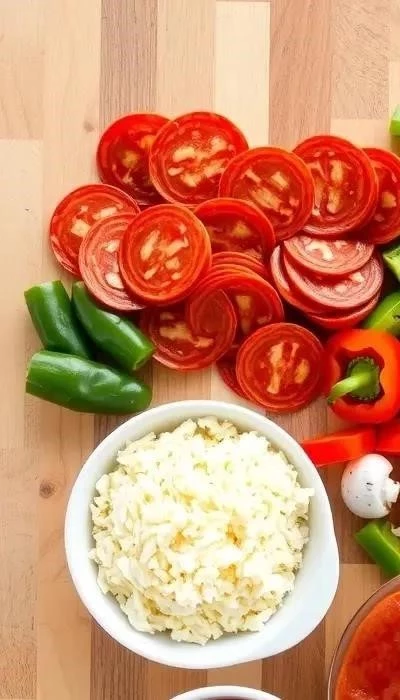 Этап 3: Добавление начинки. Нарежьте колбасу (или сосиски) кружочками или ломтиками и выложите на тесто. Нарежьте помидоры и перец тонкими ломтиками и добавьте к колбасе. Посыпьте пиццу тертым сыром. Не жалейте сыра, чтобы пицца получилась сочной и ароматной. Как указывают в рецептах, колбасу и помидоры лучше нарезать ломтиками.