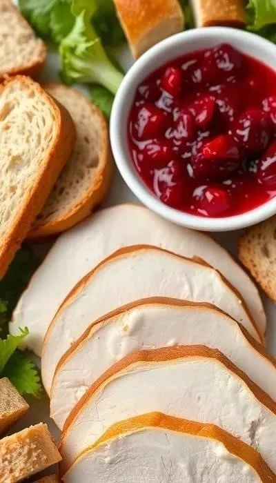 Сэндвич с индейкой и клюквенным соусом – это не просто еда, это настроение! Подавайте его на красивой деревянной доске, украшенной веточками розмарина или тимьяна. Разрежьте сэндвич по диагонали, чтобы продемонстрировать аппетитную начинку. Дополните композицию свежими овощами и фруктами, такими как морковь, сельдерей и яблоки.