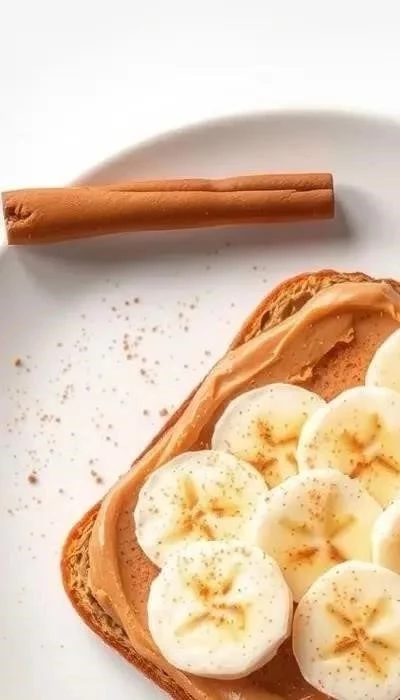 - Ингредиенты: поджаренный хлеб, арахисовая паста, нарезанный банан, щепотка молотой корицы.