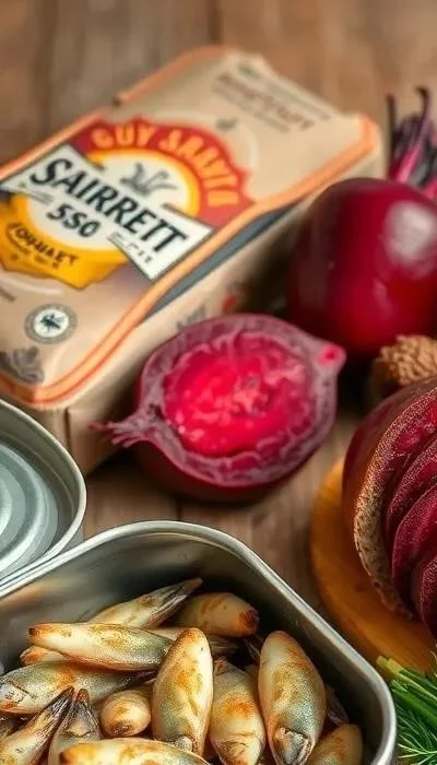 Классическое сочетание шпрот с черным хлебом и огурцом давно известно, но добавление свеклы придает бутерброду особую пикантность и насыщенность. Свекла прекрасно оттеняет вкус шпрот, а также дополняет его полезными веществами. Этот перекус идеально подходит для завтрака, обеда или ужина, а также станет отличной закуской для пикника или вечеринки. 1890 год ознаменовался началом консервирования балтийской кильки в Риге, что положило начало широкому распространению шпрот.