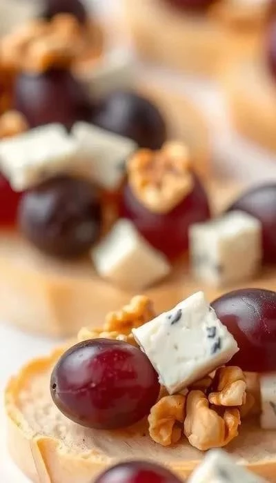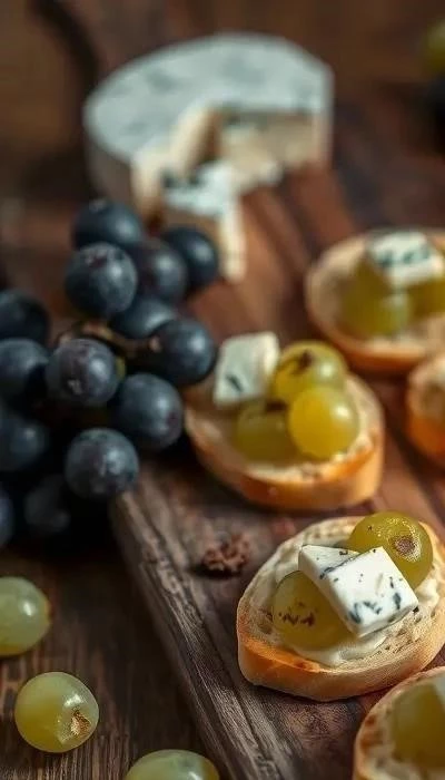 Совет: для более насыщенного вкуса можно слегка посыпать канапе свежемолотым черным перцем. Это подчеркнет остроту рокфора и добавит пикантности. Приготовьте канапе непосредственно перед подачей, чтобы багет оставался хрустящим, а виноград – свежим. Приятного аппетита!