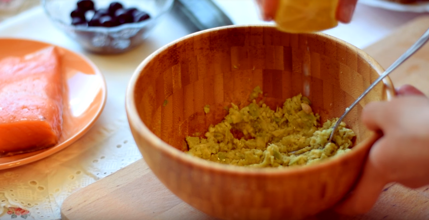 3. Мякоть разминаем вилкой и сбрызгиваем соком лимона, чтобы она не потемнела.