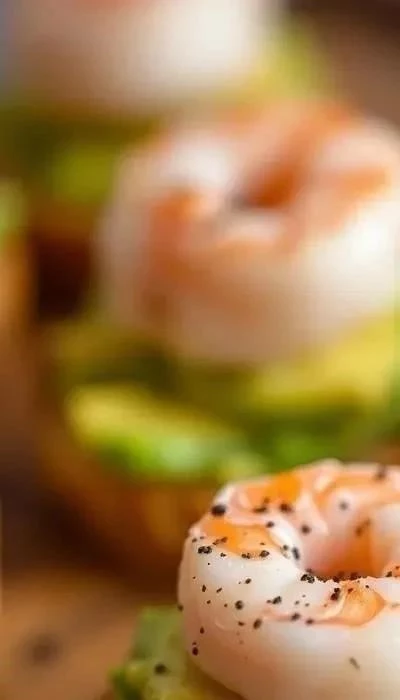 Секреты выбора идеальных продуктов: Креветки выбирайте свежие или правильно замороженные – они должны быть упругими и иметь приятный запах. Избегайте креветок с признаками повреждений или потемнения. Авокадо должно быть спелым, но не перезрелым – при нажатии оно должно слегка поддаваться, но не быть слишком мягким. Если авокадо твердое, поместите его рядом со спелыми бананами на 12 дней для дозревания. Багет выбирайте свежий и хрустящий – он должен легко нарезаться и хорошо держать форму. Сливочный сыр лучше брать качественный, с высоким содержанием жира – он придаст канапе нежную текстуру.